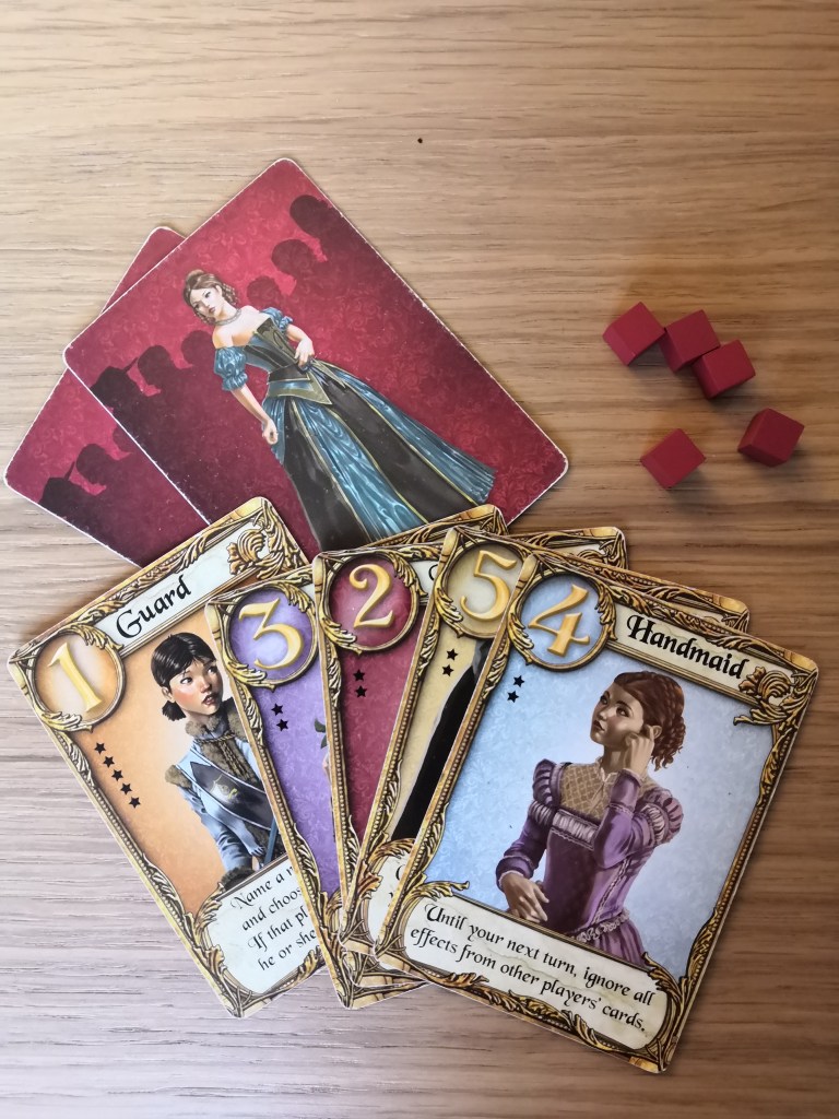 As the rounds progress, players will gang up on each other in order to knock players out, only to then quickly turn on each other to make the most of any knowledge among the group. Another quirk of play is that if somebody is (un)lucky enough to start with the Princess card, or pick her up during play, then they must work hard to avoid discarding her for the whole round, otherwise they are knocked out. This can lead to some tense moments, or to some assuming a nervous-looking player must be holding the Princess, only to be proved wrong when placing a guess.