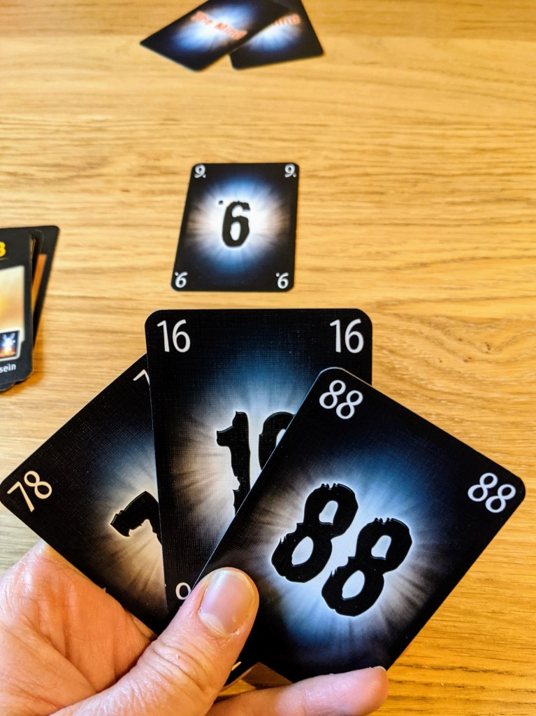 The game begins at level 1, with each player receiving one card. Players signal they are ready by placing a hand at the centre of the table. Once everyone has given the signal, the fun can begin! In silence, players can place a card face up at the centre of the table at any moment they wish. They must place one card at a time, starting with the lowest number and ending with the highest. If all cards are placed in the correct order, then the level has been completed successfully – move on to the next level, shuffle all the numbered cards and deal out the same number as your new level.